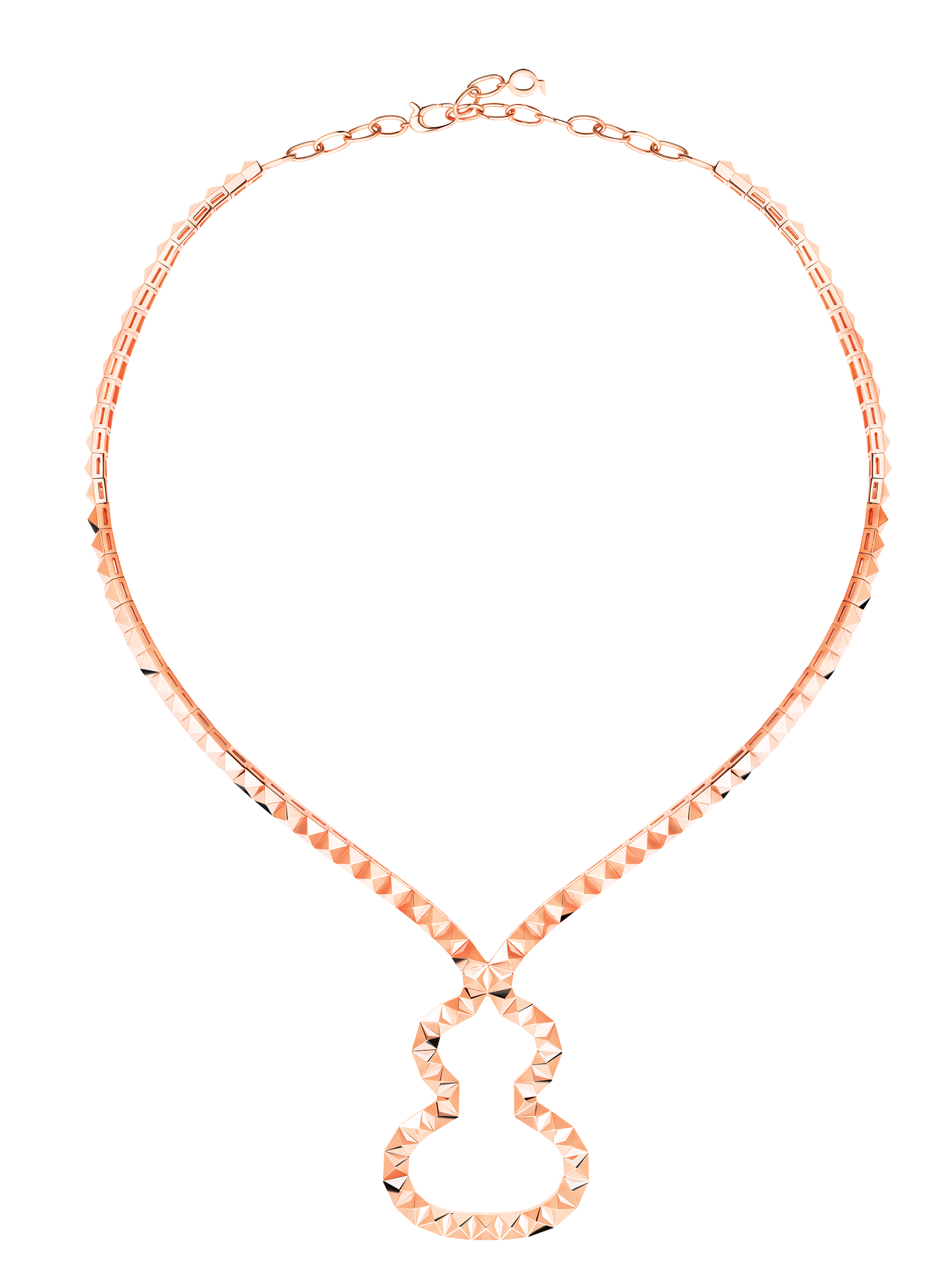 展品:Nudo Rivière项链 意大利高级珠宝品牌宝曼兰朵(Pomellato)展现了标志性的创造力和拥抱色彩的激情。“Nudo Rivière”项链是一款融合了缜密形态、深邃配色、精湛切工与流线型宝石的杰作。 “Nudo”系列诞生于1967年,看似传统实则不规则,行云流水般的偶然细节创造出极致之美。别致色彩如同镜面,映衬着展馆的苍穹光影,宁静致远。 QEELIN