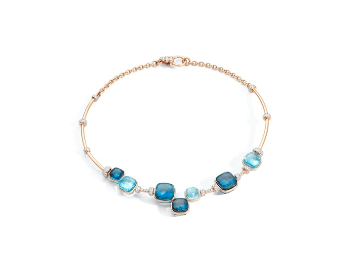 展品:Carte Blanche, Contemplation高级珠宝系列Nuage en Apesanteur项链 独具品味的法国高级珠宝世家Boucheron宝诗龙呈现了一件独一无二的高级珠宝——来自Carte Blanche,Contemplation系列的Nuage en Apesanteur项链,轻灵飘逸,如云朵环绕颈畔。不仅呼应了展馆的主题,还体现了自品牌创立以来反复出现的自然灵感。此款项链展现了数百万微小水滴蒸发凝结而成的云朵景象,营造出云朵环绕颈间的动人意境。为实现这一梦想,世家特别通过资深工程师专门研发的计算程序,生动表现出积云的独特形态;并耗时两年,潜心为这款匠心力作研发出创新材质。最终,项链共采用近10000条钛金线,冠以4018颗钻石及玻璃微珠模拟晶莹剔透的水滴,轻灵飘逸,如云朵环绕颈畔。 POMELLATO